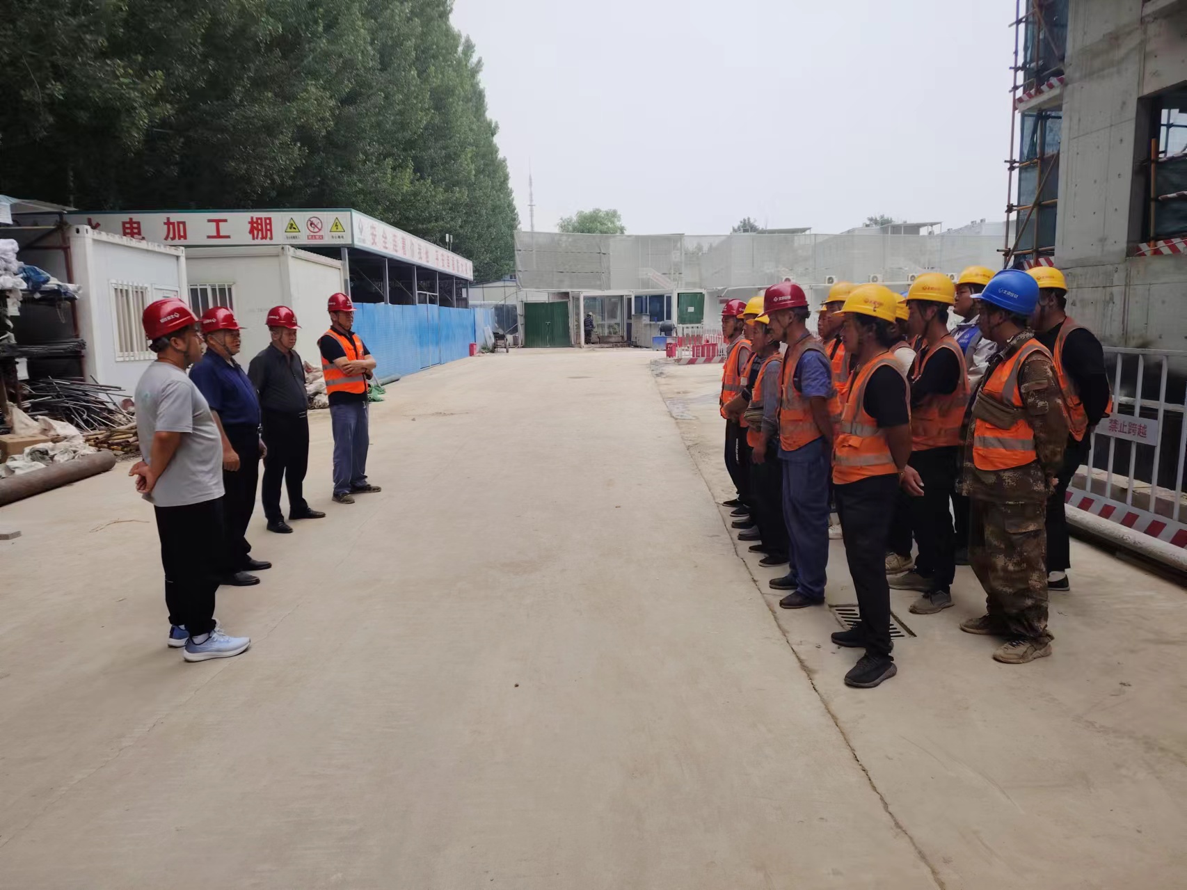 公司張部長(zhǎng)給工人進(jìn)行安全教育并對(duì)盤點(diǎn)項(xiàng)目物資